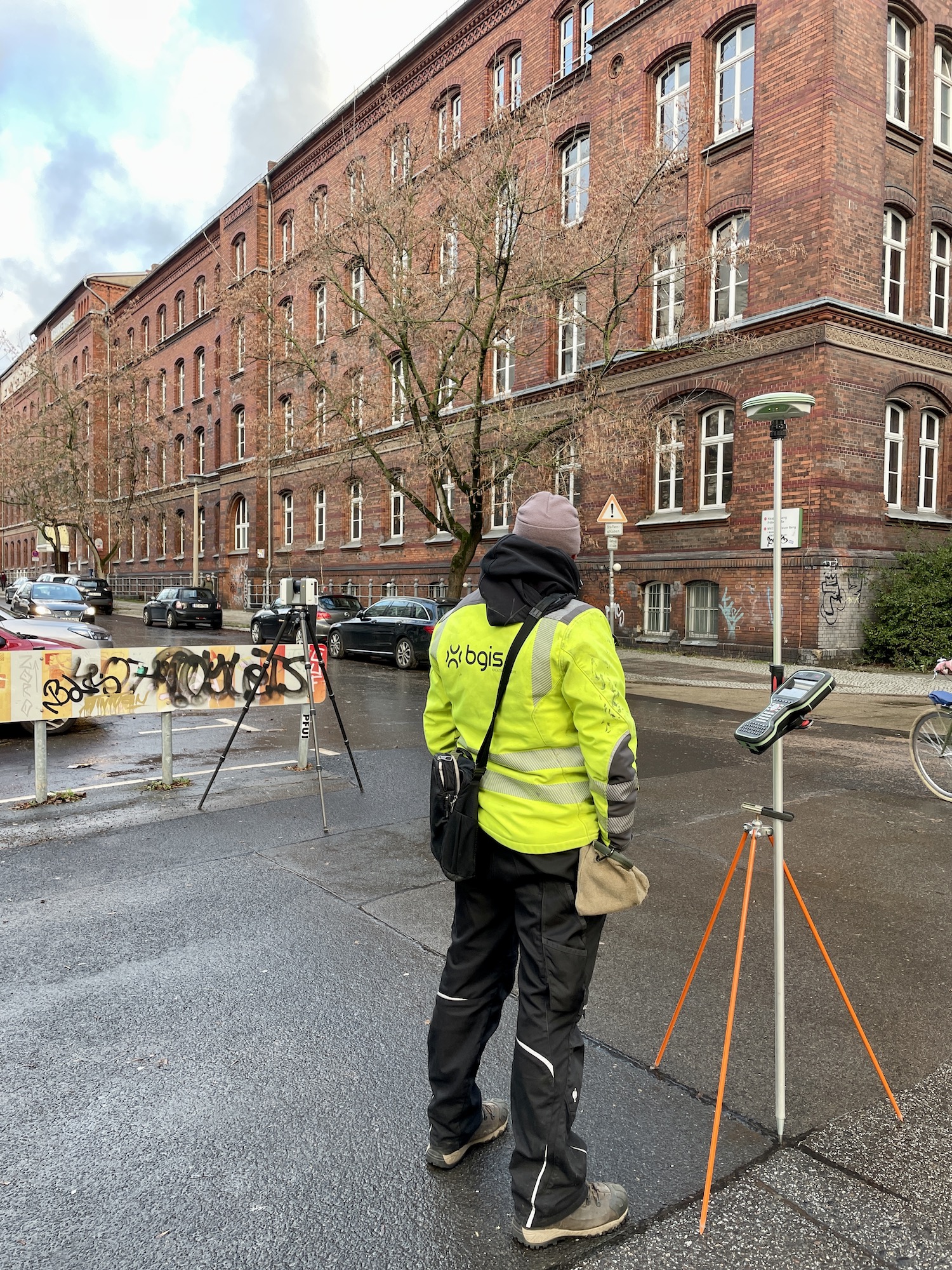 bgis GmbH scannt ein ehemaliges Krankenhaus in Berlin-Prenzlauer Berg von Außen und zeichnet 2D-Ansichten.