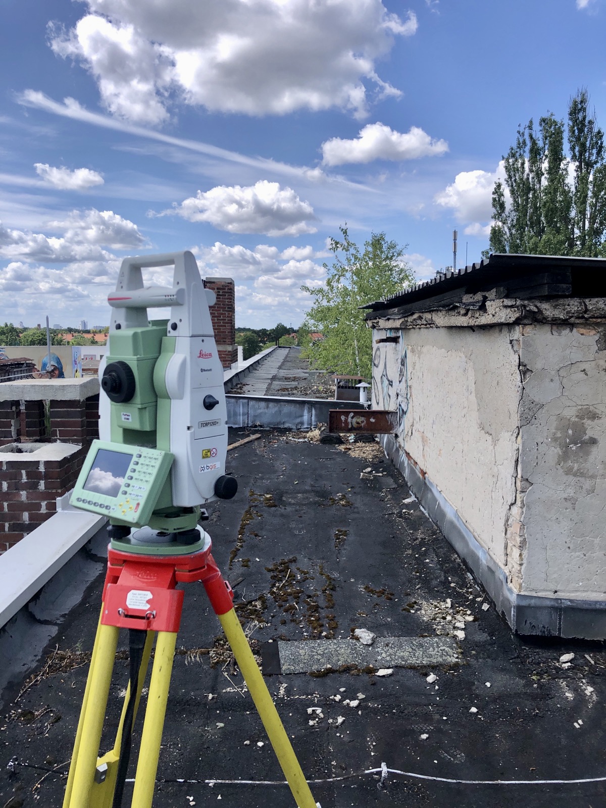 Team bgis erfasst ein Nebengebäude eines Heizkraftwerkes in Berlin-Schöneweide mit einer Kombination aus verschiedenen Vermessungstechnologien.