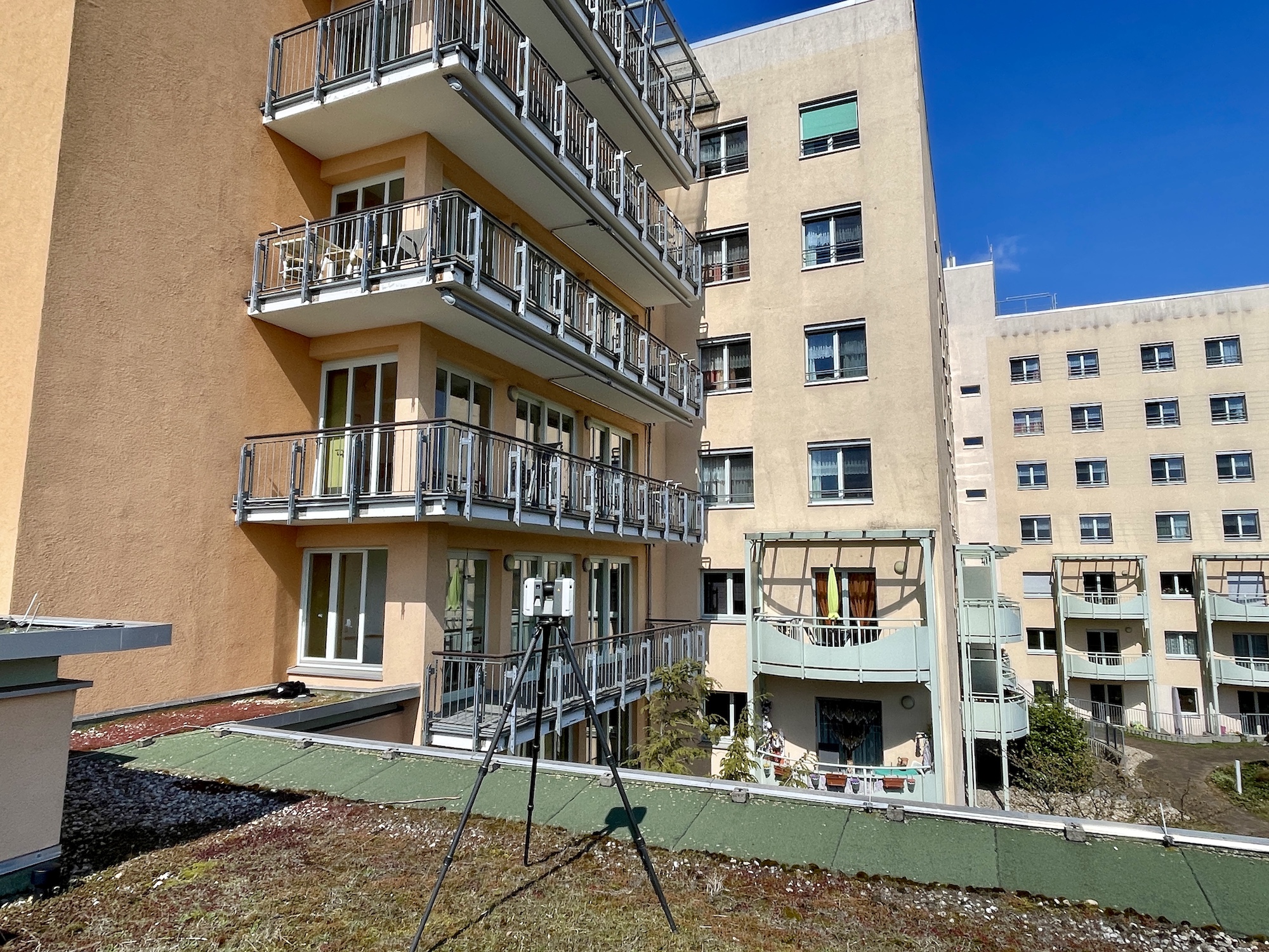 Das Team bgis scannt ein Pflegeheim mit dem Leica RTC 360 und dem Mobil Mapping System NavVis VLX. Die Bestandserfassung erfolgt, um detailgenaue Daten für eine Sanierungsplanung zu liefern. Hierbei sind durch den laufenden Betrieb viele Aspekte, wie unter anderem der Datenschutz und die Privatsphäre der BewohnerInnen und MitarbeiterInnen, zu berücksichtigen.