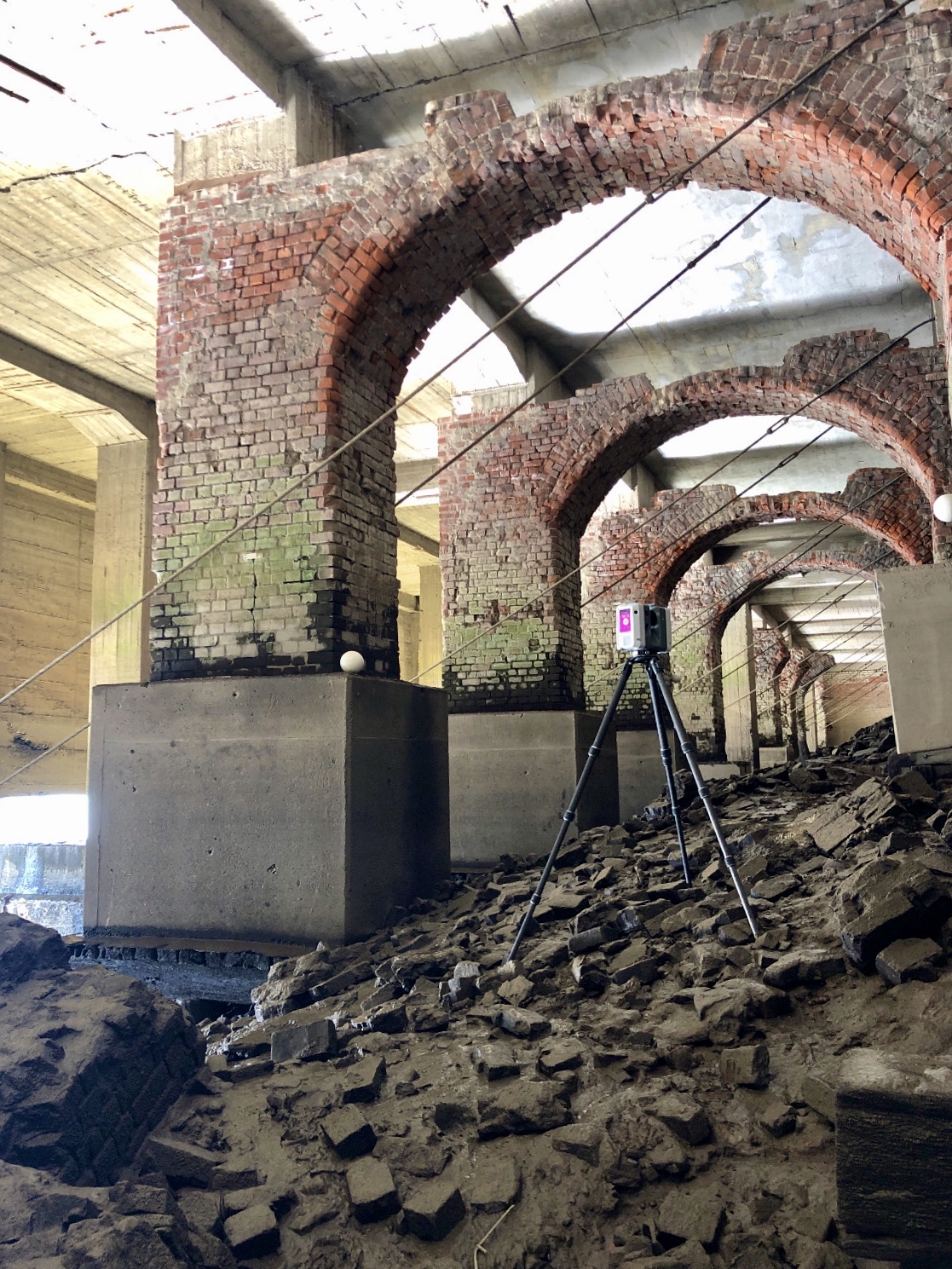 Die bgis GmbH scannt und erstellt Ansichten, Schnitte und Bestandspläne für die Lagerhallen in Grasbrook/Hamburg.