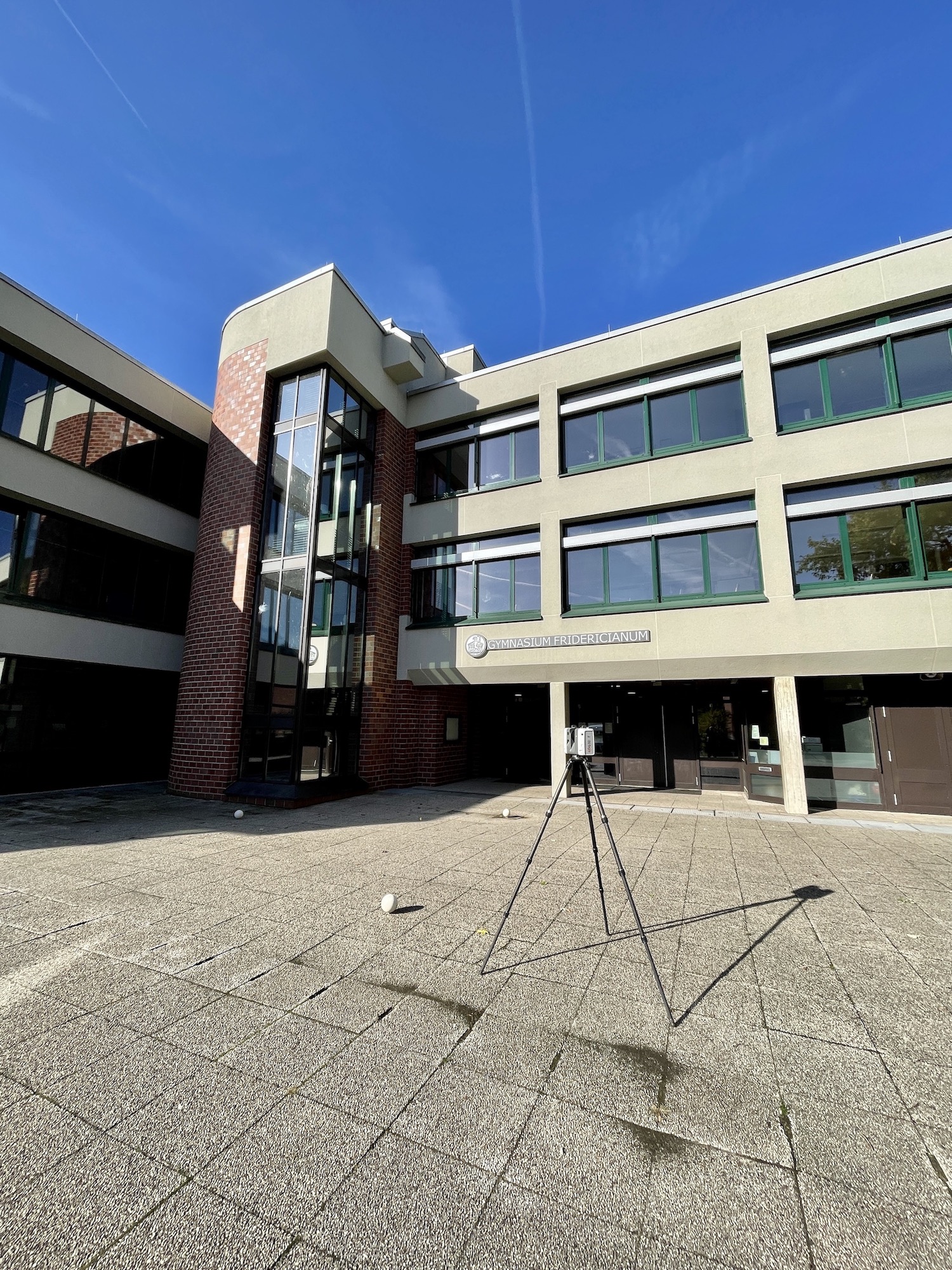Das Team der bgis scannt für den Kooperationspartner IFSB GmbH - Digitale Bauwerksanalyse das gesamte Friedrichs-Gymnasium Herford. Beauftragt wurde die gesamte Gebäudeerfassung, um anhand einer detaillierten Punktwolke einen digitalen Zwilling als 3D Gebäudemodell sowie 2D Planungsunterlagen erstellen zu können. Dieses Gebäudemodell dient als Grundlage für die anstehende Sanierungsplanung für den gesamten Gebäudekomplex.