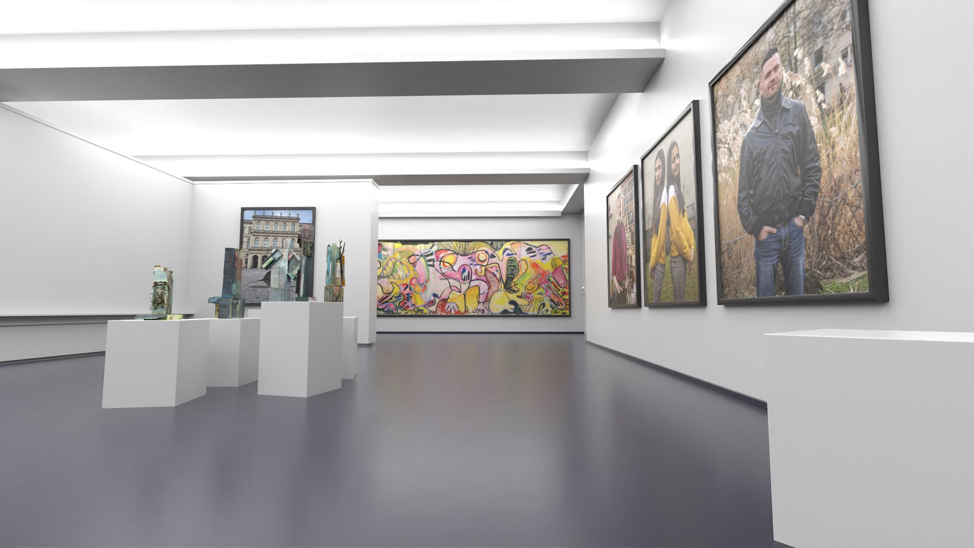 Das Team der bgis GmbH hat den virtuellen Museumsraum kreiert sowie die Kunstwerke hochauflösend gescannt, modelliert und platziert. Räume wie diese können für jedliche Art und unterschiedlichste Einsätze erstellt und digital in Szene gesetzt werden. Die Experten der bgis scannen vorhandene Räume und erstellen daraus ein Digital-Twin. Auch die Kunstwerke werden mit verschiedenen Aufnahmetechniken digital erfasst. Der verantwortliche Kurator kuratiert - wie sonst auch - die Ausstellung und die bgis platziert die Kunstwerke nach diesen Vorgaben anschließend in die modellierten 3D Ausstellungsräume. Die bgis hostet die fertigen virtuellen Ausstellungsräume und stellt sie abschließend für die verschiedenen Präsentationskanäle zur Verfügung.